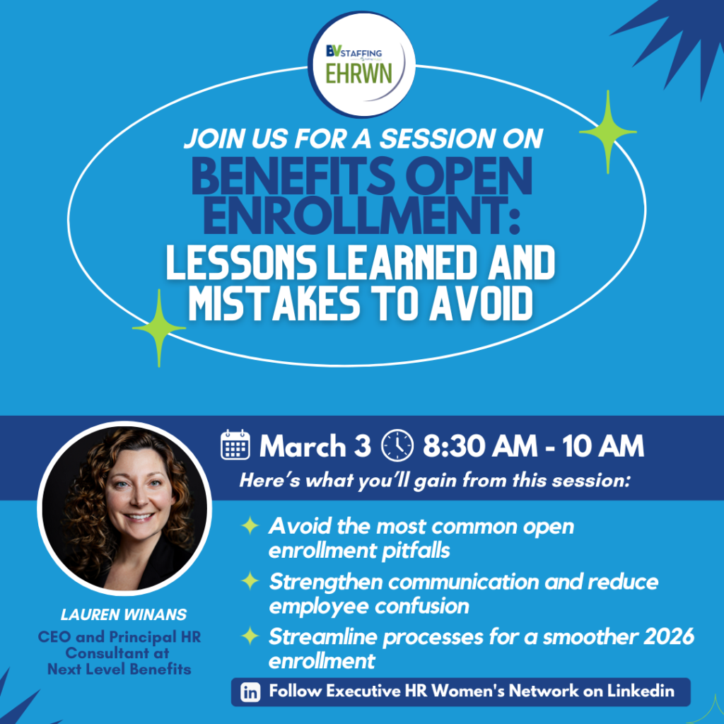 Founded in 2006 by Carmella Calta and SueAnn Naso of Staffing Solutions Enterprises, the Executive HR Women’s Network (EHRWN) is a FREE resource for women in HR leadership. The network hosts events that promote professional development, address relevant HR topics, and offer meaningful opportunities to connect with other women in the field.